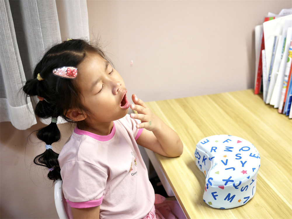 蜜蜜最近放假的時候,我也會讓她在家練習使用格蕾莎-月兒午安枕睡午覺,提前為小一生活做準備