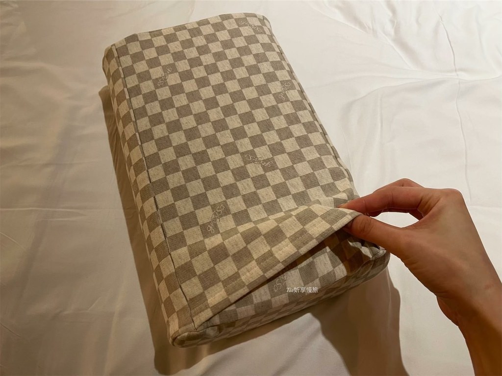 GreySa格蕾莎 隨身旅行小枕頭約 450g,尺寸為 35×22 公分,高度約 9 公分,體積不大,攜帶輕巧。
