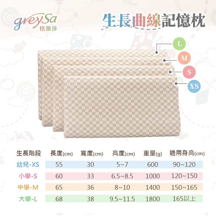 文章連結:GreySa格蕾莎小學生成長曲線記憶枕|伴隨孩子一眯大一吋的記憶枕