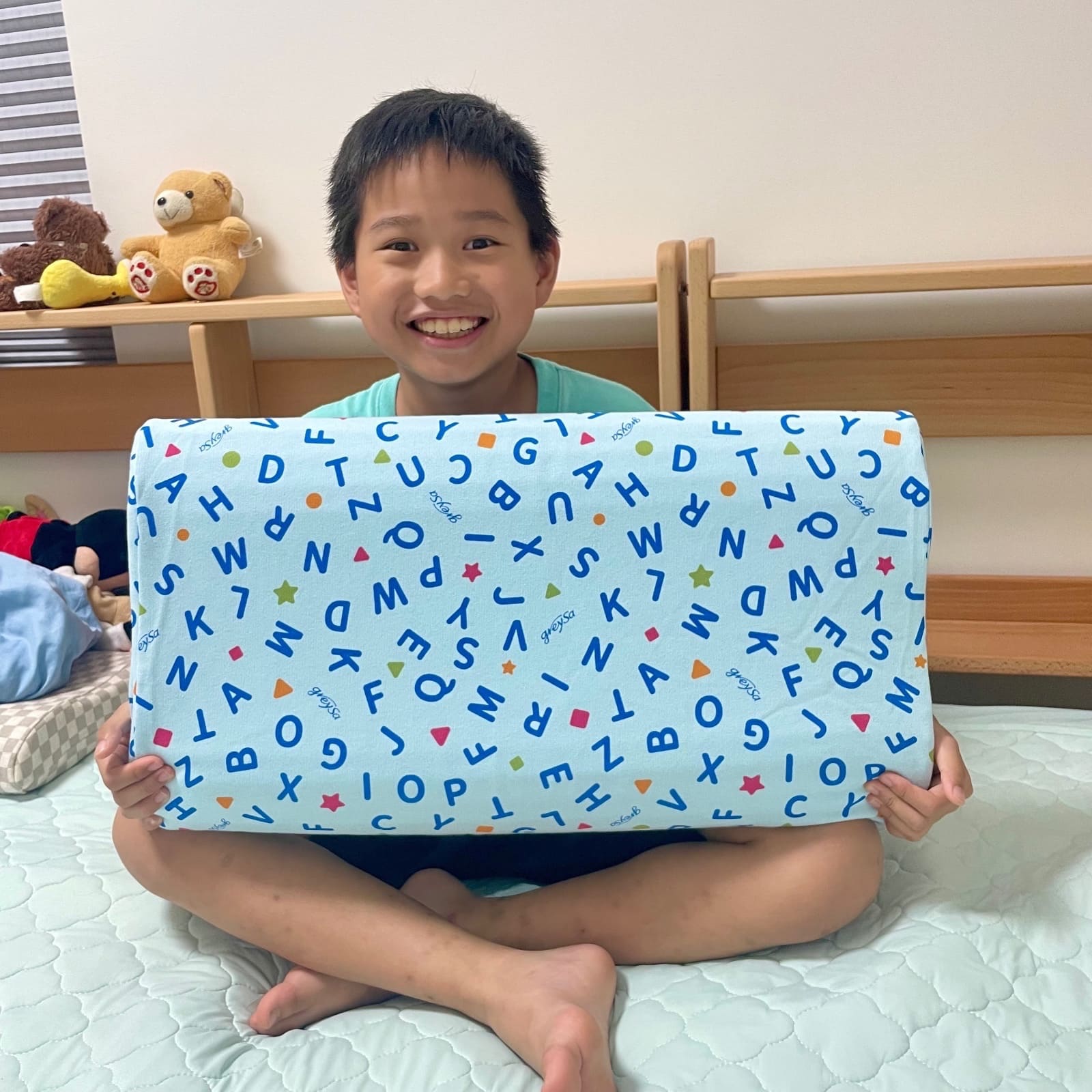哥哥每次倒暑假睡多吃多最開心的就是風暴式長高,比較麻煩的是又要幫他換枕頭了,睡了幾個月的成人枕頭一直嫌太高,正好想到之前幫妹妹入手的幼兒枕她非常喜愛,於是又入手GreySa格蕾莎小學生成長曲線記憶枕來幫他更換枕頭。