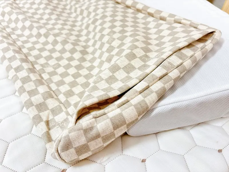 棋盤花色是漂亮的奶茶色,和臥室布置風格很容易搭配,而且也比較耐髒,較不用擔心奶垢或口水漬的問題