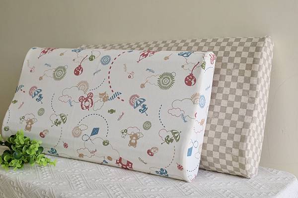 這款記憶枕有三種不同花色可以選擇,我們選了棋盤(S)和童趣(XS)兩種。