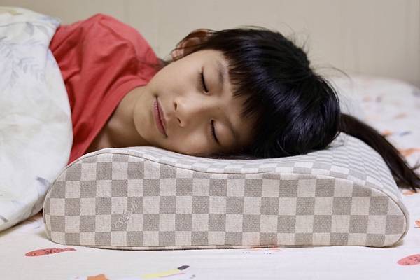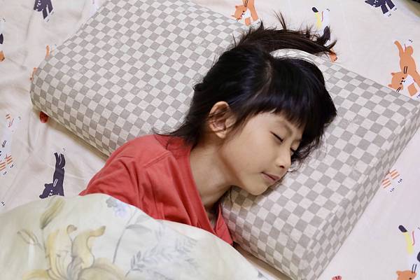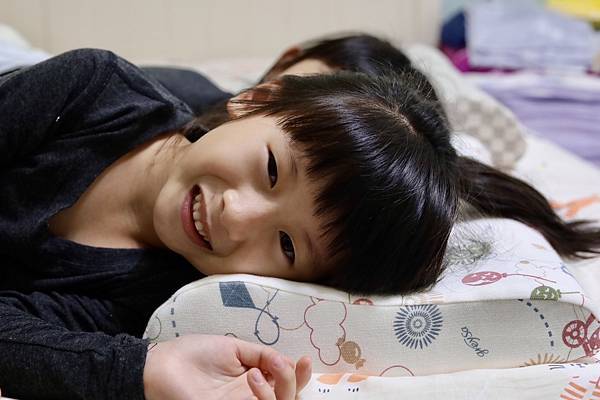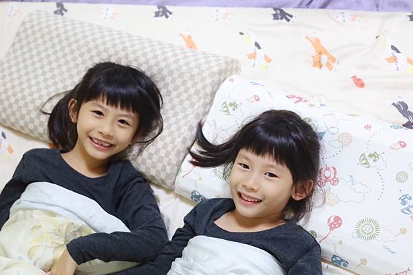 姐妹倆平常都喜歡側睡,枕頭的高度符合孩子的頸椎曲線,不會太高或太低,設計上剛剛好