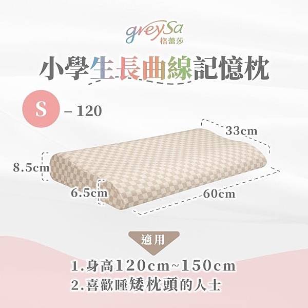 GreySa格蕾莎【小學生長曲線記憶枕S-120】120cm以上兒童適用的枕頭