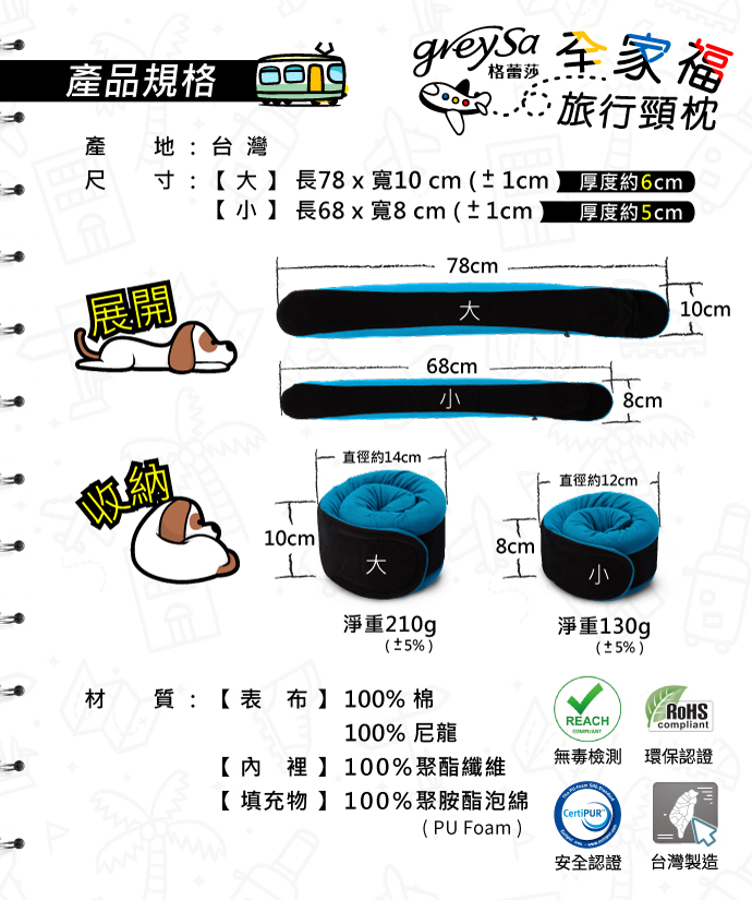 【推薦】GreySa格蕾莎全家福旅行頸枕 出國必備小物 全家都必備 好收納好攜帶 360包覆脖頸
