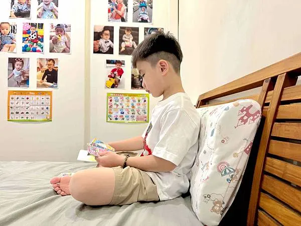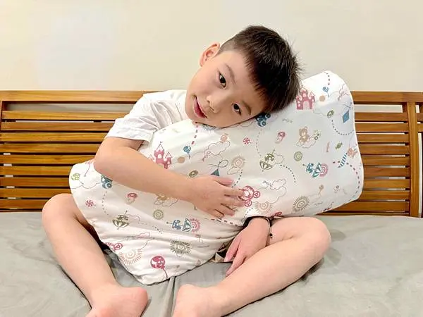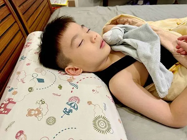 Jason平常喜歡仰睡,枕頭的高度符合孩子的頸椎曲線,不會太高或太低,設計上剛剛好