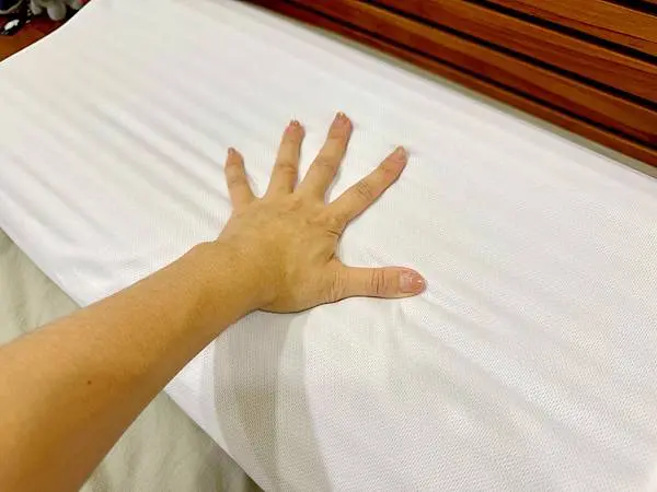 Jason體質屬於很會流汗,而枕頭使用材質是純棉布料加上枕頭本身有竹炭設計,能吸濕排汗,睡起來覺得乾爽舒服