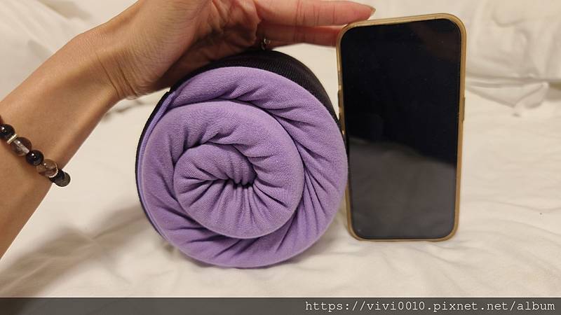 收納起來也一點不佔空間,跟IPHONE 14PRO放在一起,格蕾莎全家福頸枕也沒大到哪裡去